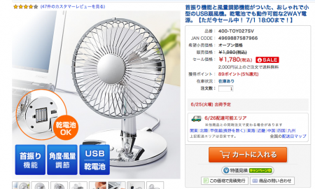 1.サンワダイレクトのサイトから、クーポンの対象となる商品を選び、「カートに入れる」をクリックしてください。