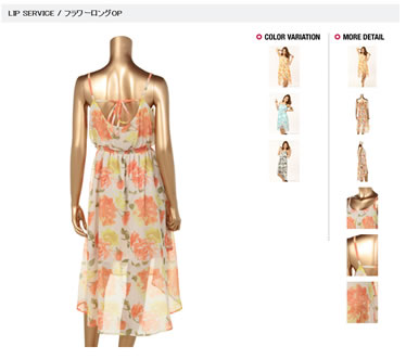 せっかくなので、リップサービスのアイテムを紹介します。上品なフラワープリントのロングワンピースの「フラワーロングOP」は、通常価格8,295円が43%OFFの4,725円とセール価格です。