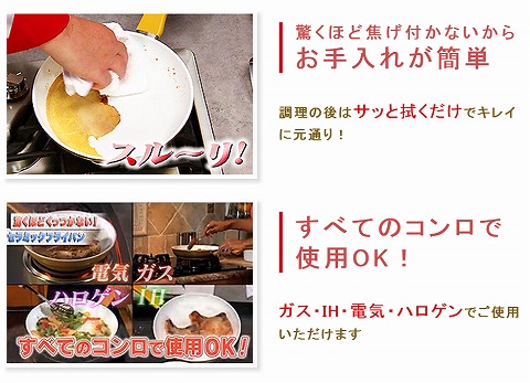 単品でも購入できますが、フライパンとなべ、セラミックナイフなどお得なセットで購入することもできます。ダイヤモンドの次に硬いセラミックですから焦げ付かず、丈夫で長持ちし、お手入れも簡単。ガス・IH・電気・ハロゲンとすべてのコンロで使用でき、熱伝導率が高いので電気代やガス代も節約可能です。
