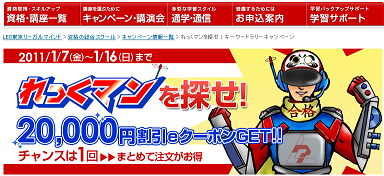 2011年1月17日までの期間限定ではありますが、今年から資格取得の勉強をしたいと思っていて、迷っていたのであれば、このクーポンとこの機会は、ぜひ活用したほうがよいですよ。