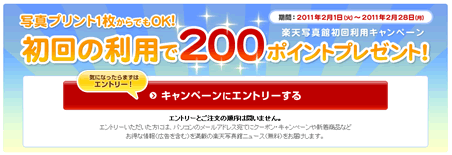 また、現在キャンペーンが開催されていて、初めて楽天写真館のプリントサービスを1枚でも注文すると楽天ポイント200ポイントがプレゼントでもらえます。※エントリーが必要なので、忘れないようにしてくださいね。