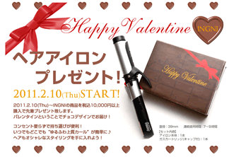 実は実は・・・INGNI STOREでは、すごいノベルティキャンペーンを、2月10日からスタートしたのです。その内容は、税込10000円以上お買い上げの方に、「ヘアアイロン」を先着でプレゼントです!見逃してはいけないのが、抽選ではなく「先着」というトコロ。なくなり次第終了なので、とにかく急がなくてはいけないのです☆