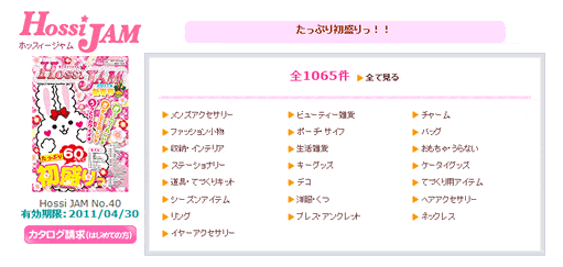 今回のキャンペーンでは、「Hossi JAM 40 号」に掲載されている商品全て、10パーセントオフ♪もしくは、送料無料になっちゃうの☆「カタログ無くした~!」という人も大丈夫ですよ。インターネットで「Hossi JAM40号」掲載商品は見ることができるのです。