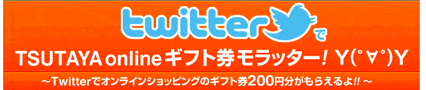 ショッピングサイトで、ツイッターはあまり見かけ無いと思うのですが、TSUTAYAではTwitterに力を入れていて、店舗やネットショップやレンタルのDISCASがそれぞれアカウントを開設しています。今回は、TSUTAYA オンラインショッピング×twitterから、オンラインショッピングのギフト券200円分プレゼントなのです。お買い上げ税込み2000円以上から使えます。また、DVD・ブルーレイおよびGAMEのお買い上げのみが対象商品となります。利用できる期間は2011年2月28日(月)23時59分までですから、急いでチェック!