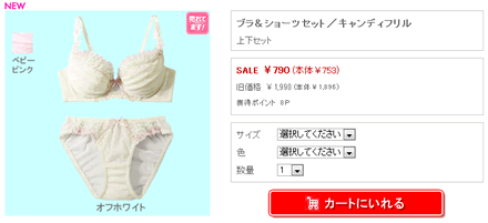 シンプルで可愛い♪ブラ&ショーツセット/キャンディフリルは、デイリー使いにピッタリのランジェリー。なんと!上下揃って790円というからオドロキです。
