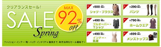 まずは、クリアランスセールとして、最大92パーセントOFFという驚愕の価格で提供中なのです。注目は春の季節に重宝なシャツやブラウス。390円というプライスから揃っています。