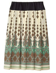 柄や色が、六種類から選べます。ウエストゴムではきやすく、丈も膝が隠れる長さで、外出にも普段着にも万能に使えます。座りっぱなしでもシワにならないような素材ですので、旅行などでも重宝ですね。プリーツがきれいに出ているので、リーズナブルながらもそれを感じさせない商品といえるでしょう。
