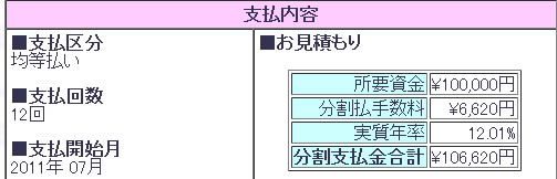 例えば、10万円の講座か商品を12ヵ月の分割払いした場合、通常の月の総額は106,620円(手数料込)で、このキャンペーン中なら101,000円となるので、5,620円もお得になるんです!