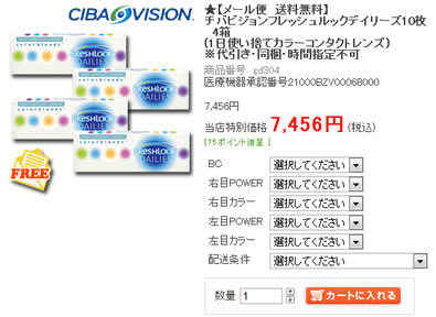 今回のキャンペーンは、7月12日午前10時までですから、まずはゆっくり商品チェックといきましょう。「チバビジョンフレッシュルックデイリーズ10枚 12箱」は、カラコンの中で、今注目の品です!「あなたらしさ、自然に引き立ち、印象きわだつ」がテーマの一日使い捨てタイプのカラコンです。彩り鮮やかな3つのカラーを、1枚のレンズにブレンドして、単色のカラーレンズにはない自然な奥行きと表現力が自慢です。デイリーズの快適なつけ心地のまま、あなたの印象をアップしますね。