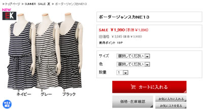 「ボーダージャンスカNE13」は、ルームウェアにぴったりなボーダー柄のジャンパースカートです。衿ぐりと袖ぐりが大きく開いているので、インナーを合わせてくださいね。レギンスとあわせて小物を充実させれば、お出かけ着としても充分対応可能です。旧価格¥3,045の商品が、SALEで何と!¥1,990ですよ!これは買うっきゃないでしょ。