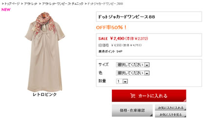 「ドットジャカードワンピース88」も、すごく便利に使えそうなアイテム♪50%オフで、今なら ¥2,490で購入できます。品格のあるジャカードドットにサテンで光沢がある生地なので、お出かけにもピッタリです。胸元に入る立体的タックが入っていて、視線を上半身に集める効果がありますよ。