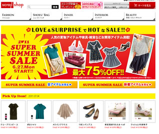 ネット・カタログ通販のスクロールがお届けする通販ショッピングサイト「スクロール」では、『2011 SUPER SUMMER SALE』がスタートしました!脅威の最大75パーセントOFFですから、何だか沢山買っちゃいそうです♪