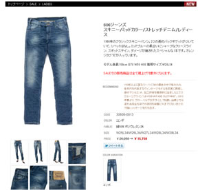 「606ジーンズ スキニー/ミッドカラー/ストレッチデニム/レディース 」は、1966年のクラシックスキニ―パンツです。2つの長めバックポケットがついていて、芦名が効果絶大!ミッドブルーの風合いにシャープなクリースライン、スポットステイン、ダメージが施されています。通常ですと¥26,250もするので、なかなか手が出せませんが、今ならセールで¥15,750 ですから、このチャンスにスペシャルな1本をGETしましょう。