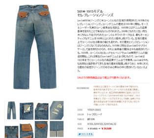 メンズでは、「501® 1915モデル セレブレーションジーンズ」がカッコイイ!ポイントは何と言っても、バックポケットのデザインです。さりげないワイルド感も演出できます。定価は、¥51,450ですが、¥24,500まで値下げとなっていますよ。まさに、購入チャンスですよね!