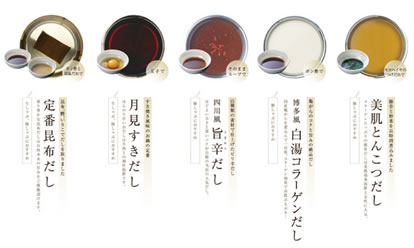 様々な美味しい物を提供しているその中でも、やはりしゃぶしゃぶが大人気で、「美肌とんこつだし」「博多風白湯コラーゲンだし」「四川風旨辛だし」「月見すきだし」「定番昆布だし」と2種類の「季節限定だし」の計7種の中から選べる二色しゃぶしゃぶで、きんのぶたの特徴の一つです。