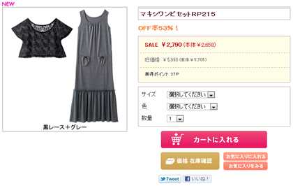 そんな最終セールの中の一押しアイテムは、「マキシワンピセットRP215」。この商品なんて、OFF率53%でSALE価格¥2,790で手に入るんです。こういうアイテムは持っていると重宝だから是非ゲットしておきたいよね。
