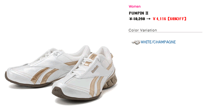 こちらのSALEですが、Reebokのサイトをチェックしていくと、嬉しいことに気が付くはず!「2011 SPRING &SUMMER SALE 30% OFF」と題されているので、てっきり全商品30%OFFかと思いきや・・・実は、最大60%OFFになっています。それも、60% 、50% OFFになっている商品がゴロゴロ♪これは見逃せません!と言う事で、注目60%OFF商品の中からお一つ、ご紹介しちゃいましょう。